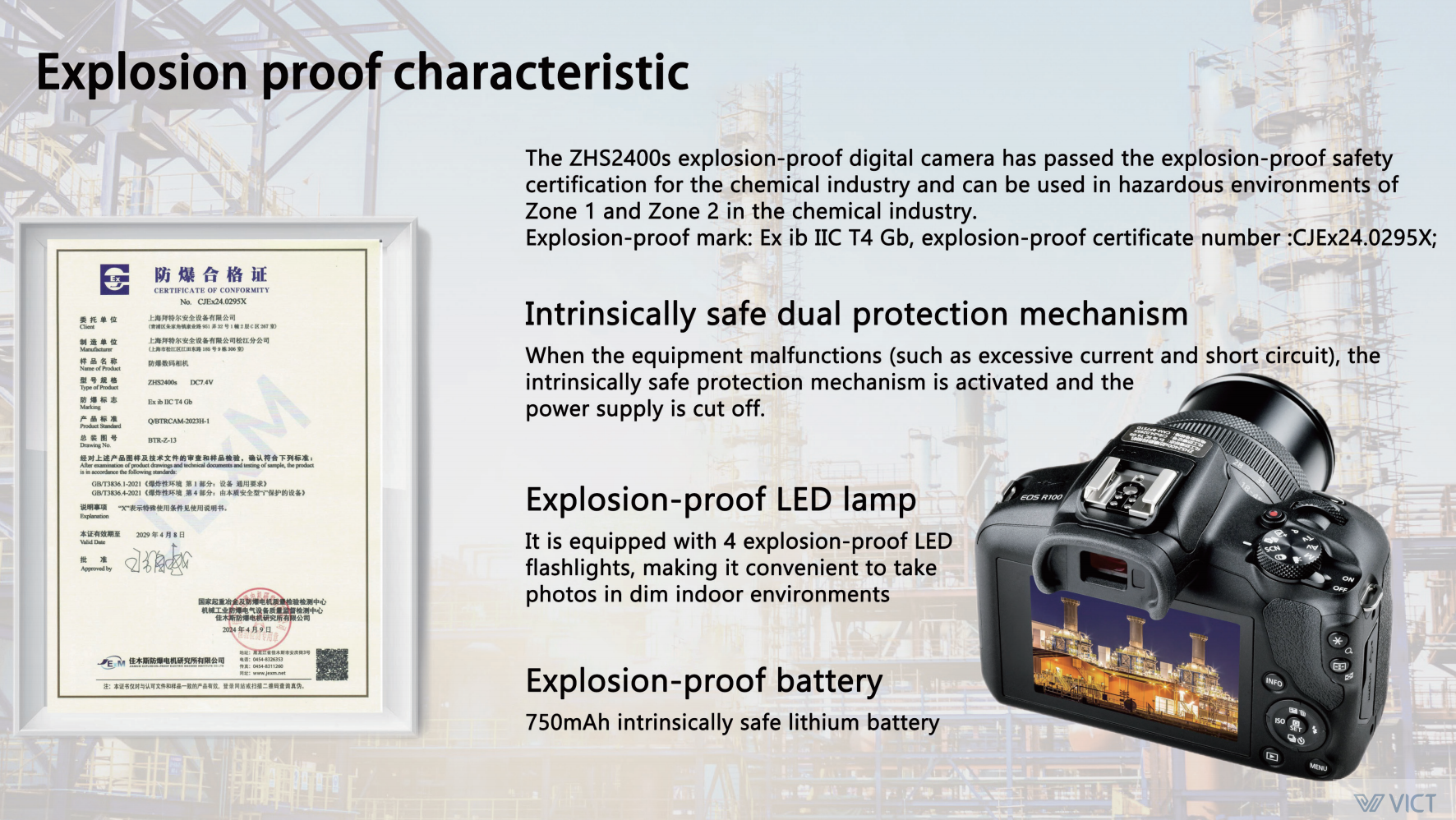 ZHS2400s Explosion-proof camera Product Item: Intrinsically safe explosion-proof Use for flammable chemical gas Zone 1 & Zone 2 flammable dust environments Zone 21 & Zone 22 Use for Coal mine Clear,Safe,Cost-effectiveness,Reliable Send Inquiry Live chat Product Detail FAQs ... Share: PREVIOUS:Excam 1201S Digital Explosion-proof Camera NEXT:Mining explosion-proof camera Related Products Coltri gasoilne high pressure 100L air compressor ICON petrol ZHS2580 Professional explosion-proof camera D-BTR Industrial Explosion-proof phones Exdv1301/KBA7.4-S Explosion proof Video Camcorder,Ex camera